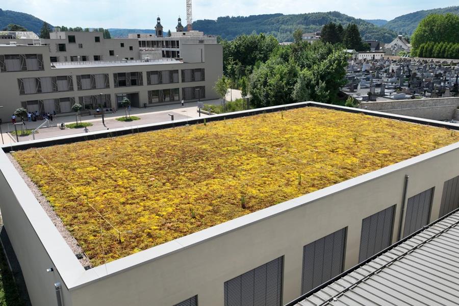 Entre 2020 et 2024, le Lycée Mersch s’est doté d’un ensemble de toitures complexe, combinant différentes techniques, matériaux et usages.