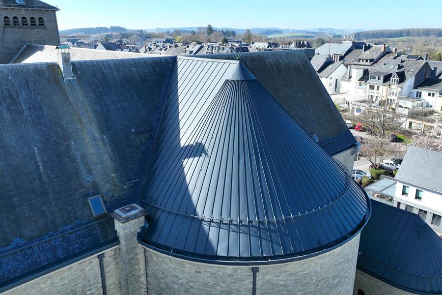 Die Sanierung der Pfarrkirche St. Vitus verdeutlicht die Fähigkeit von Toitures Jacobs, technisches Know-how aus dem Industrie- und Gewerbebereich erfolgreich auf komplexe öffentliche Bauvorhaben zu übertragen.